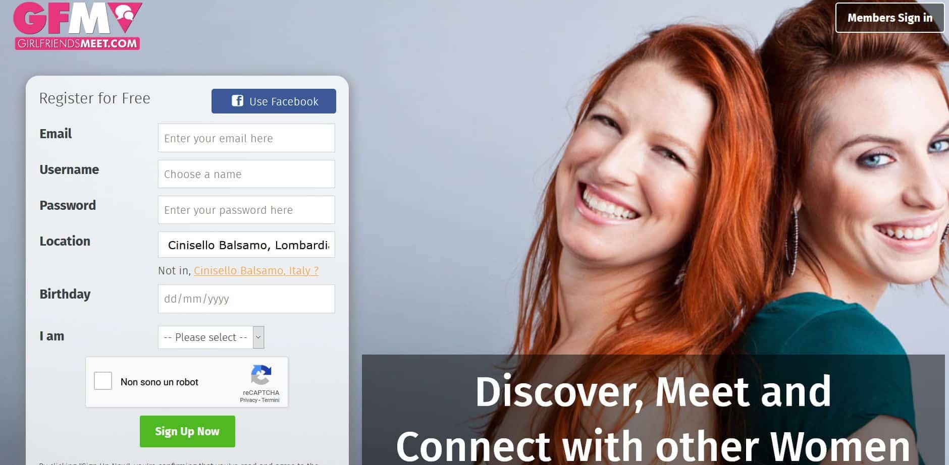 Il vero portale sul mondo delle lesbiche è girlfriendsmeet.com con ragazze e donne di ogni fascia d’età, ma soprattutto provenienti da tutto il mondo. Interfaccia in inglese e foto chiare e soprattutto vere. Ci sono donne online praticamente H24, visto che il sito è aperto alle lesbiche di ogni paese, in cerca di un flirt o dell’occasione della vita. Leggi la recensione.